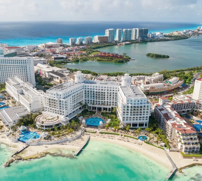 Playas de arena blanca, vida nocturna vibrante y hoteles de lujo todo incluido. Reserva ahora tu estancia en Cancún con solo una llamada.